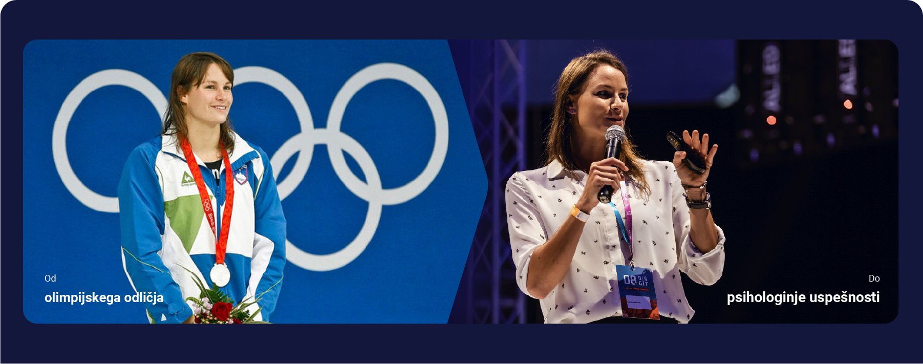 V svoji 20 letni karieri sem že zelo zgodaj spoznala, da je moč uma veliko večja kot sem si kadarkoli lahko predstavljala. Odločila sem se za zelo garaški in motorično zahteven šport, saj sem na dan preplavala vsaj 15 kilometrov. Skoraj vsak trening sem se borila s svojimi mislimi in plavalna očala večkrat napolnila s solzami. Vse dokler se nisem naučila psiholoških tehnik, ki so mi pomagale premagovati brutalne napore in ohranjati »trezno glavo« v ključnih trenutkih. Takrat sem spoznala, da si najbolj od vsega želim te psihološke tehnike približati vsem ljudem in jim pomagati na poti do uspeha. Zato sem svoje življenje posvetila nevroznanosti in Psihologiji uspešnega nastopanja.
