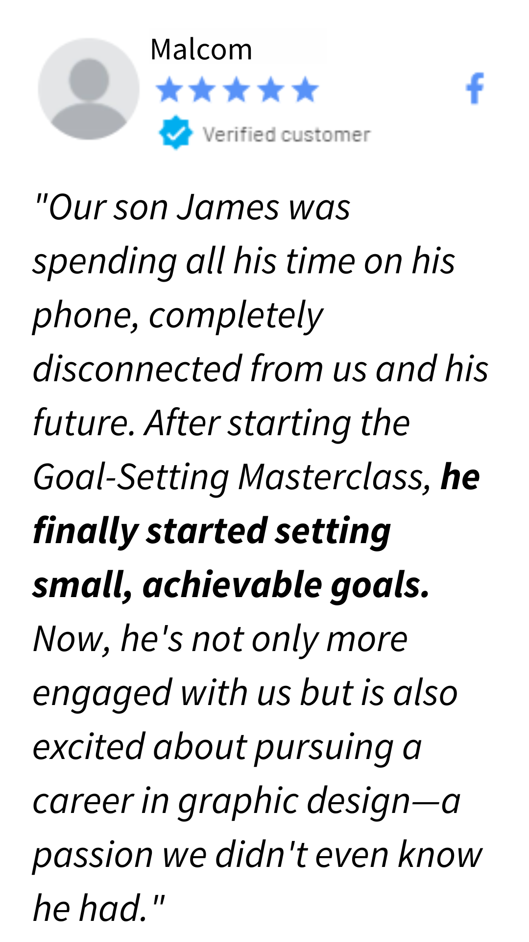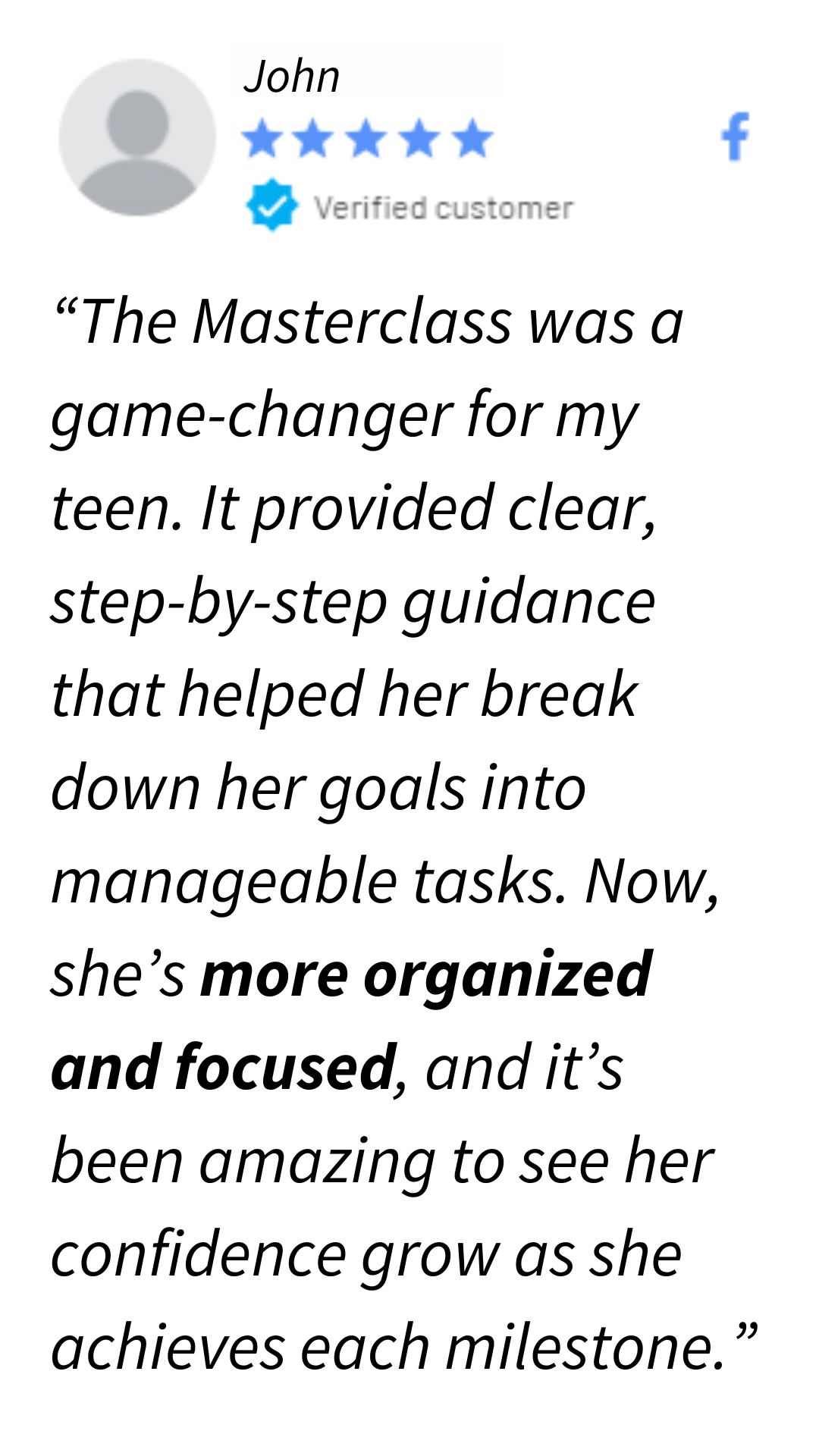 Čeprav je ta masterclass tečaj namenjen posameznikom, ki so pripravljeni prevzeti odgovornost za svoje cilje, so ga mnogi starši podarili svojim najstnikom – in rezultati govorijo sami zase:
